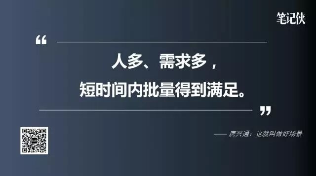 你扫了100个,里面才有潜在的3-2个,为什么不到一些人多、需求也多,而且集中在最近的场景,你拿一把镰刀把他们给收割了呢?这就叫场景。