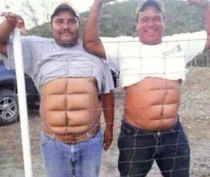 先看两个对比,拥有六块腹肌的人如右图,而一般人是左图: