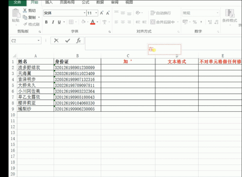 录入工作中我们肯定会数字多余15位的情况,比如输入身份证号码,但是Excel只能显示15位数字,身份证有18位,如果不做点什么,数据会显示不出来的。方法有2: