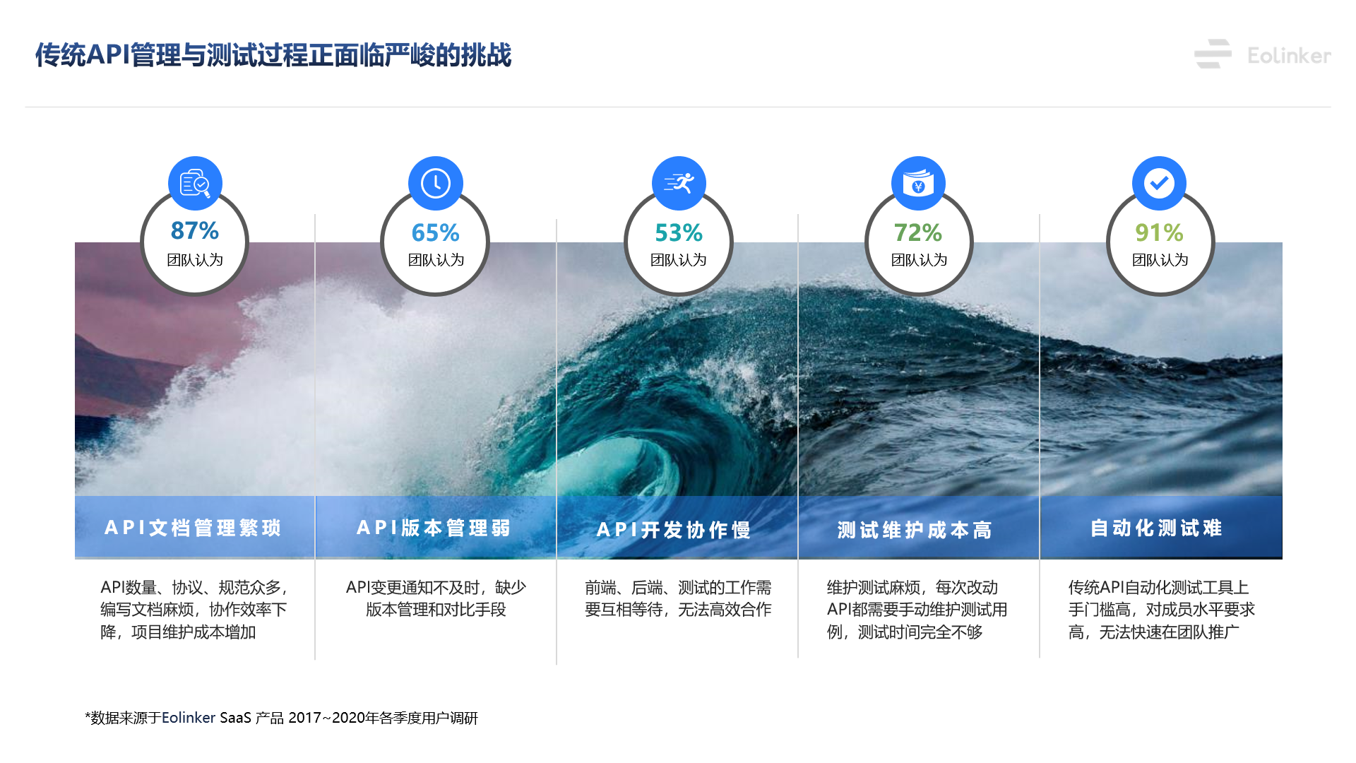 为了解决上述问题,Eolinker 推出新一代的 API 研发管理产品,帮助研发、测试及项目管理团队更好地完成 API 管理工作。