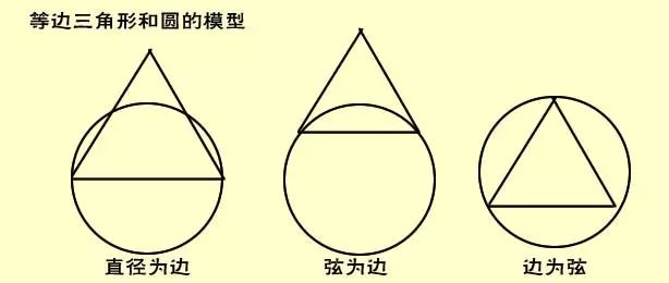 比如上图:等边三角形和圆以边与圆的关系构成的模型,当然还有圆的内切….这些条件简单,但是结论丰富且固定的模型,是学生要勤于去总结的模型。当模型总结越丰富,不仅是知识的理解越丰富,也搭建了知识点间的联系,当模型越丰富,自己的知识拓展深度,也会逐梯次加深。有了这样的基础,再去应付高深的应用,也不在话下。