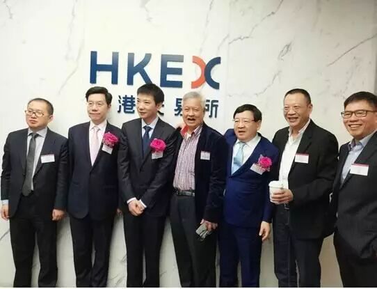 港交所门口合影,从左至右倪正东李开复、蔡文胜、徐小平、杨向阳、何伯权