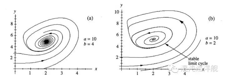随着参数a,b的变化系统具有完全不同的动力学模型,见下图: