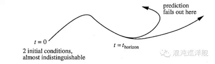 图为混沌的判定原理-初值敏感性,无限靠近的两条曲线,未来会怎样?