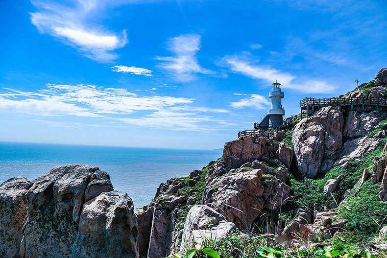山的在这边可以遥望到对面的白色灯塔,屹立在海天之间。