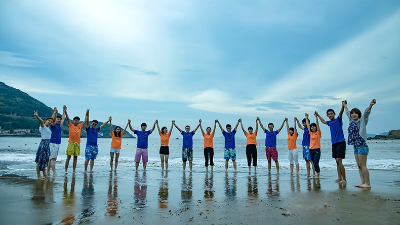 在这样刷刷的海浪声里和风中,大家绕岛一周,最后回到原点。最后,我们在大海前合影留念。