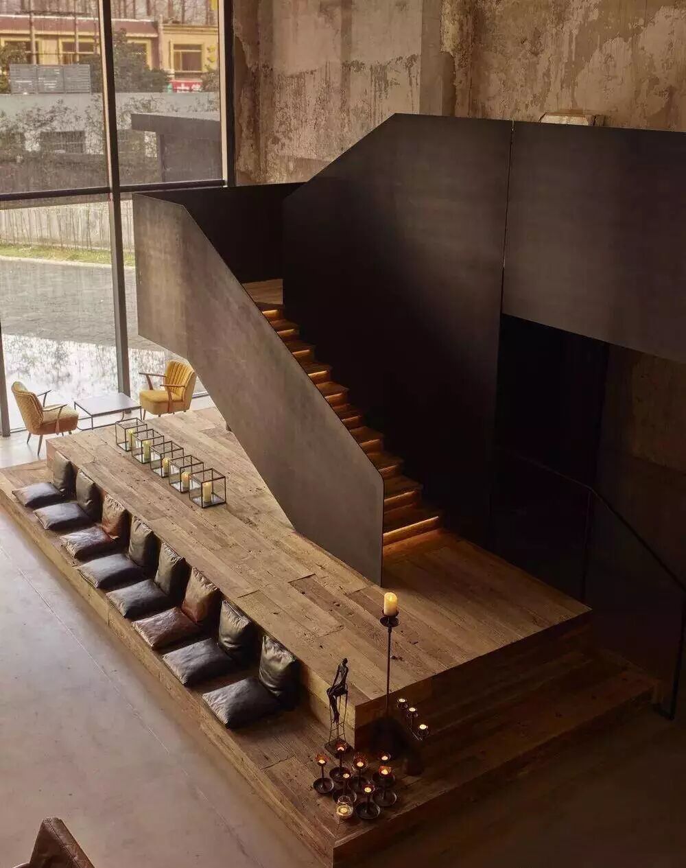 或者,利用天然材质的原始色彩让灰色空间多一份温暖的感性情绪,色彩统一融合,又略显高级。