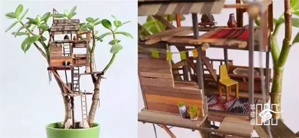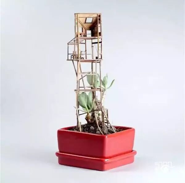 城市、森林里的超级树屋也许遥不可及,但你是否想过,在自己家里的小盆景上也搭建起一座座可爱的『迷你树屋』。洛杉矶艺术家Jedediah Corwyn Voltz创作了一组围绕室内植物和盆景而建造的微型雕塑树屋,取名『小地方/somewhere small』。