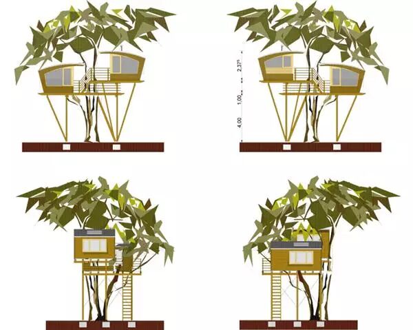 几乎我们每个人在童年梦想里都有建在树上的房子,在那里你可以花时间与你的朋友玩耍。树屋,是一种与树有关的屋型建筑。树屋基本可以建造在任何树上,但较为理想的是坚挺且已生长成熟的橡树、栗树、岑树以及一些大型的针叶树,因为坐落于高高的树枝上,安全性和持久性的确是房屋的最首要问题。树屋简单的线条、外形与周围的自然环境相融合,房屋通过长梯与地面连接,有的还在高处建有一个室外平台作为空中露天活动区。也许在不久的未来,各种奇特的树屋则完全可以当作日常主要居家之用,到那时候,绿野仙踪也就不再是童话。