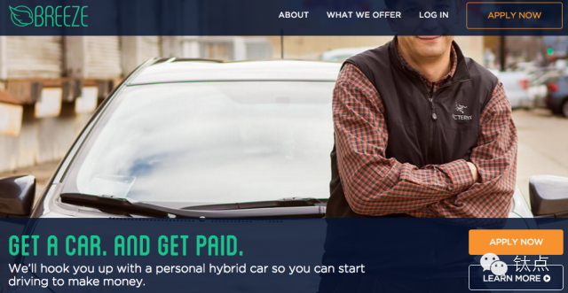 Breeze就是这样一个,为缺乏车这一根本性基础但仍然打算加入Uber或Lyft赚一把的人提供服务的公司。Breeze(通过第三方)提供车辆,并以较为灵活的归还时间限定来吸引租车司机。虽然这个服务在早期经历了非常狗血的被Uber封杀(因为条款限制)后又解封的桥段,但目前看来它还是稳稳当当地运作着。