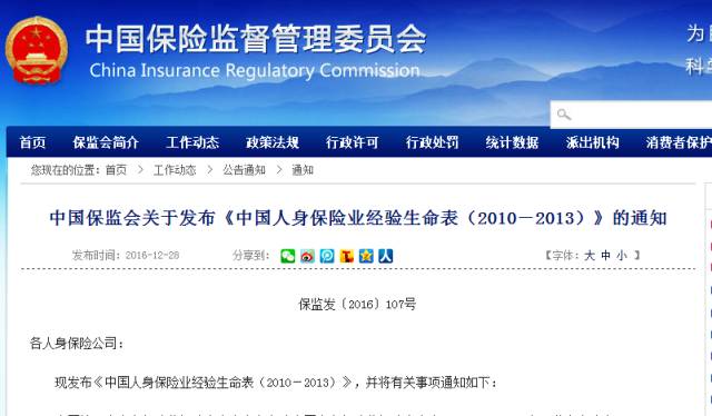 另外值得注意的是,2016年12月,保监会发布了我国保险业第三套生命表--《中国人身保险业经验生命表(2010-2013)》,被保险人群的死亡率提高了,这就意味着…