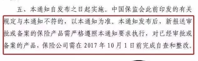 自通知发布后,新产品都要按规矩来啦,目前还在销售的产品,最迟在2017年10月1日完成整改。也就是说,保险行业即将面临一轮产品整改,快速返还年金、高额返还年金、附加万能账户,将成最后的绝唱!
