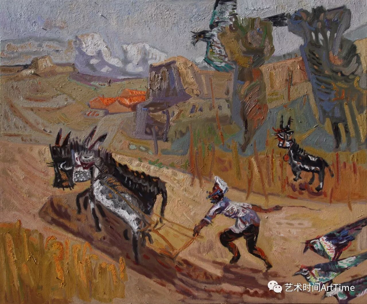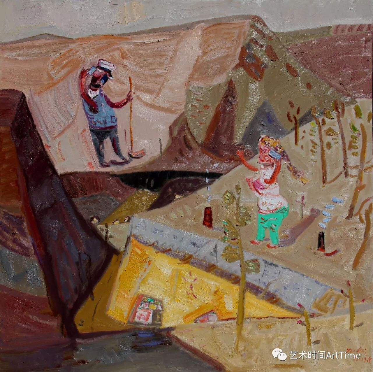 于来,身高体大,为人宽厚,平日不多话,是典型的山东大汉。我与他认识较早,始于上世纪九十年代初,他上大学的时候。大学毕业后,于来先在教育系统工作,后调到威海画院,从事专职绘画创作。继而他又到北京徐悲鸿画院和中国艺术研究院油画创作研究室进修,那时我们俩又有过一段交往。于来的绘画基本功扎实,造型方正有力,色彩浓郁,笔触粗犷,很有几分表现主义的画风,我对他绘画方面的认识基本上停留在那个阶段。后来听说他每年坚持到中国的西北部写生、创作,画了很多作品,但我一直没有见到。这次见到新作,我眼前一亮,心情为之振奋,重现唤起了我内心早已遗忘的两个字——感动。于来的这批作品和当下画坛流行的样式不同:新鲜、生猛、有想法、有角度、有内涵、有情、有趣,令人回味。