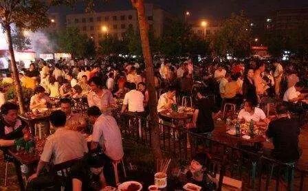 有外地过来郑州的说,夏天的郑州有个街景很独特,街边撸串儿。不像南方沿海的海鲜大排档那样精致,也没有东北啤酒广场那豪爽。炉子一副,啤酒一筐,折叠方桌一架,热热闹闹的食客一群,齐活。