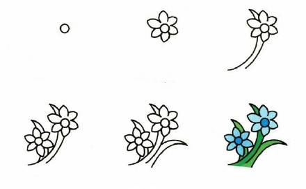 第四步:画出第二朵小花和叶子