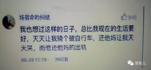 一场宿命的纠结:我也想过这样的日子,总比我现在的生活要好,天天让我起个破自行车,还他妈让我天天哭,而他还他妈扯淡出轨。
