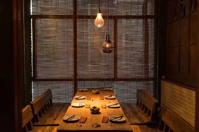 店面氛围布置得很有味道,据说每块桌板都是老板从乡下收集来的老门板改造而成。店内布置也多用竹、木等元素,显得格外别致。