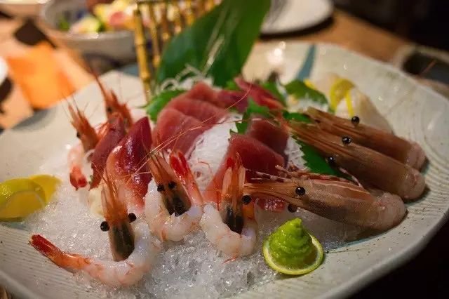 它家还有十分厚道的刺身拼盘。金枪鱼、三文鱼、北极贝、甜虾,无一例外都是非常新鲜的,蘸上一点点芥末放入口中,就可以感受到新鲜的海洋味道。