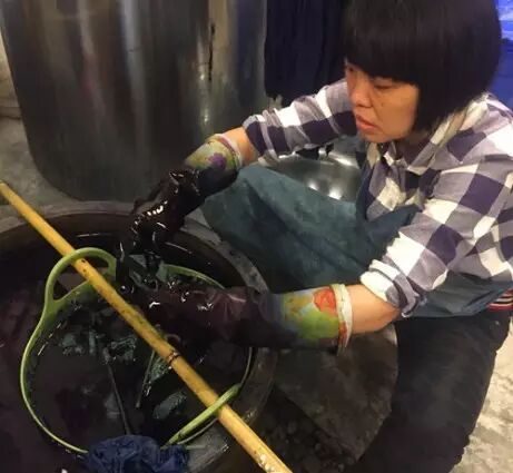 看这蓝汪汪的大染缸,是不是有种无从下手的感觉?没关系,鉴于尽可能地保护菜鸟,放进染缸的环节就交给专业人士——二姐来帮你完成了。