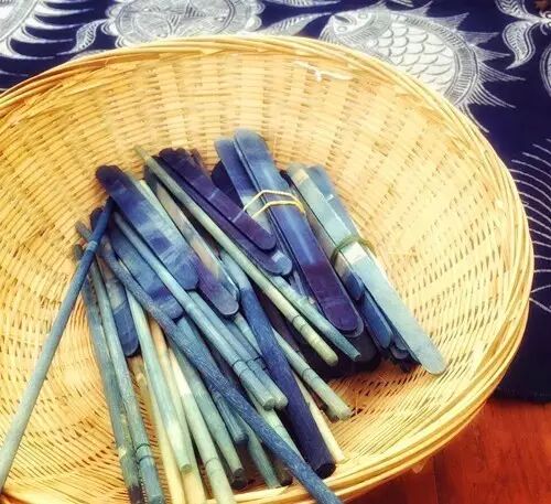 首先,老师会教大家一些关于扎染的知识,这里的染料几乎都是由草木或果实制作而成的。