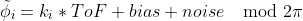 &= 2\pi{f_{ic}}ToF + 2\pi(f_{ic}-f_c)\tau_{bias} + n_{\phi_i} \mod 2 \pi\