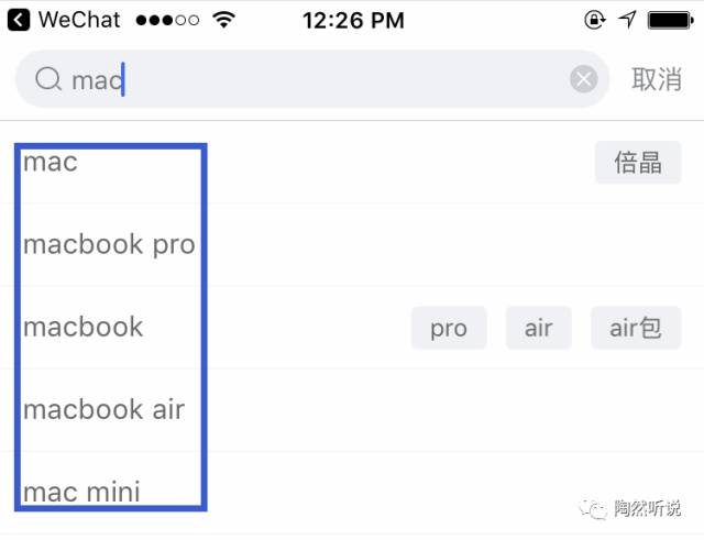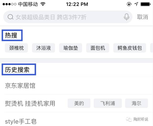 两大移动平台都有标准的搜索控件,尽量按照平台规范设计,使用原生控件。