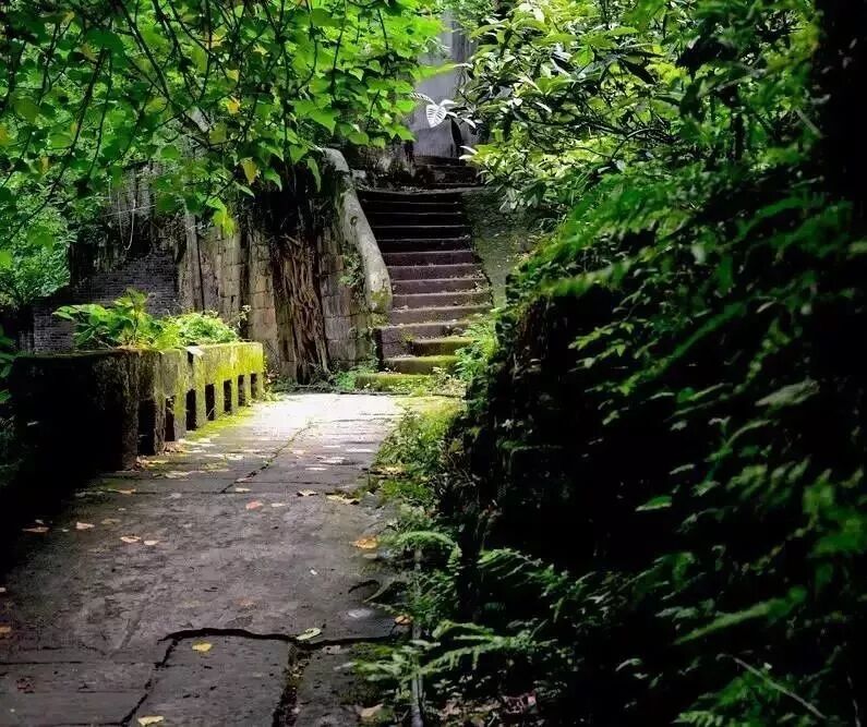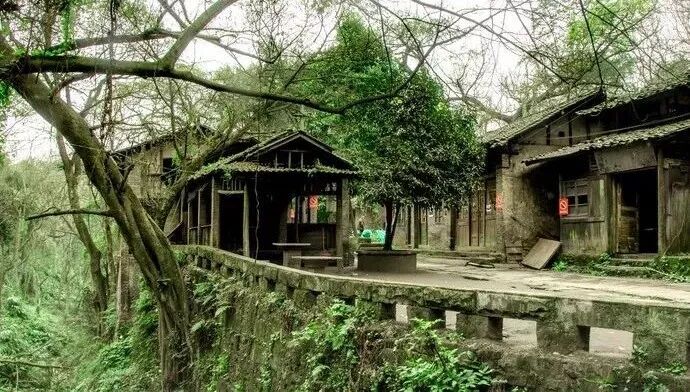 然而进去之后着实被它惊艳到了:山峦拱翠,古树参天,溪流潺潺,小路蜿蜒,青石板两旁的青瓦房随山势而建,原汁原味的巴渝建筑,美的不真实,像画卷一样展开。