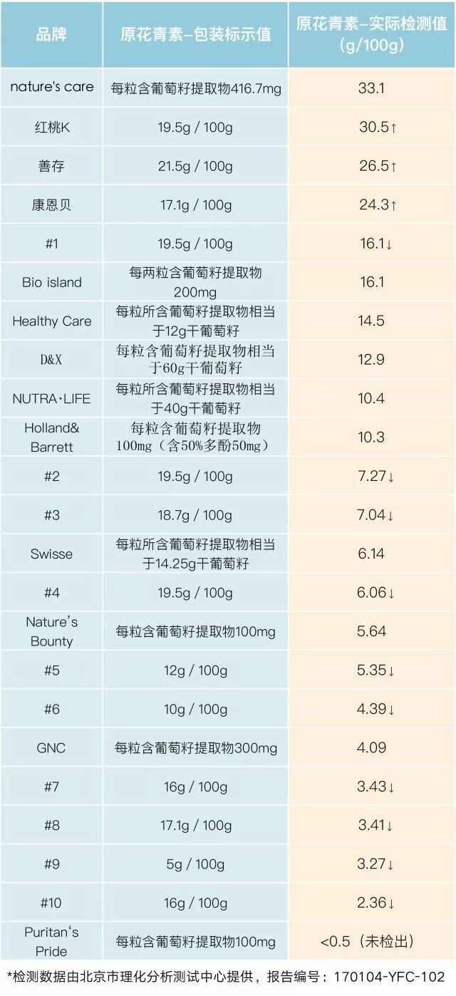 同样标注了每粒含100mg葡萄籽提取物,Holland&Barrett原花青素实测值10.3g/100g,而Puritan‘s Pride却压根没检出,提取丢了?