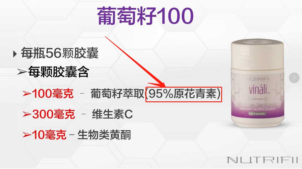 与国内保健食品不同,国外的葡萄籽胶囊并不会直接标注原花青素含量,而是代之以“每粒含葡萄籽提取物××”,“每粒所含葡萄籽提取物相当于××干葡萄籽”。葡萄籽提取物的具体成分十分复杂,虚没虚报原花青素含量是换算不出来了。