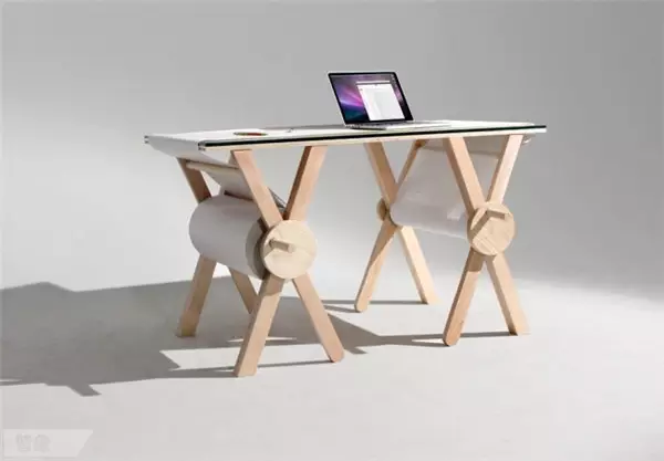 某个值得铭记的电话、几条寻常的街道名称、灵光闪现、幼稚的涂鸦、以及所有重要和所有不打紧的事,你都可以直接写在办公桌上、将点点滴滴以非数字化的简单方式储存起来,点滴记忆办公桌就是这样一个传统和原始的设计。设计师在桌子底部设有两个卷轴,其中的1000多米纸张从桌面铺过,方便你随时记录、涂鸦;你可以在写完后将它储存起来,等到你开始怀念过去时,就可以重新翻开这卷厚重和充满故事的卷纸,细细重温某段时光、某个片刻。