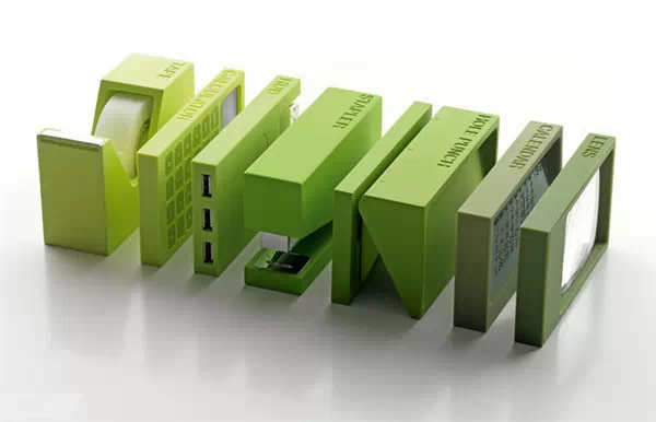 一个凌乱的的桌面要不就让人心神愉悦、要不就心烦意乱,大多数人是后者,我是前者,因为相对于面对一个凌乱的桌面,我认为整理一个凌乱的桌面是件更困难更令人心烦的事。不过现在,时尚品牌LEXON旗下的办公用品设计BURO也许会让我对此想法有所改观,它将一般会出现在桌面上的办公用品,例如万年历、计算器、胶纸座、订书机等,全部变成尺寸相当的一套产品,不用时可以非常轻松的将它们方方正正的收一叠,整齐又有型。