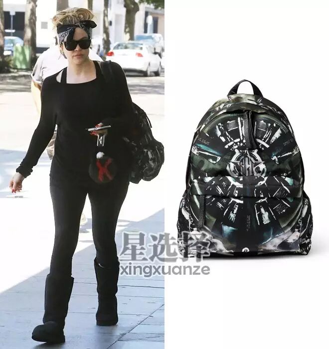 Khloe Kardashian爱背这只纪梵希花花的双肩包,经常背着去健身。1135刀(7050天朝币)。