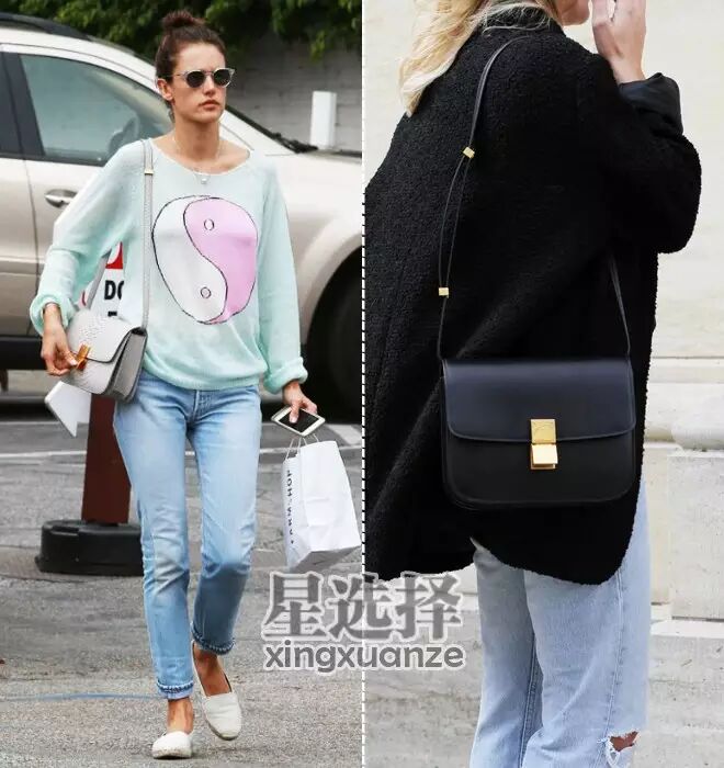 模特AA的这只叫Box bag,中号,bluefly目前有一只黑色款打折后2792刀(17335天朝币,下图右)。