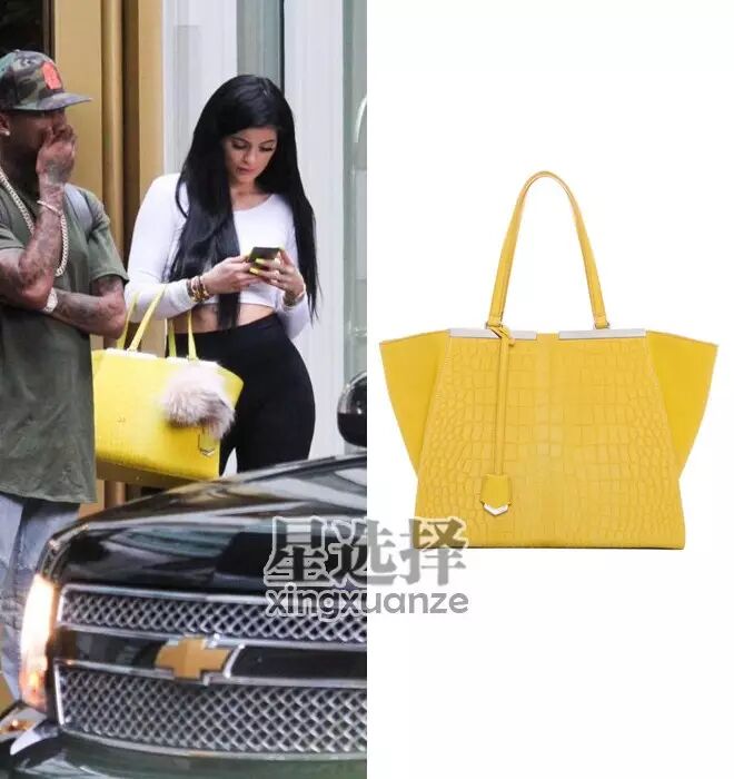 一个是Fendi。Kylie Jenner,手上这只黄颜色的包包是3Jours大号,18272天朝币。