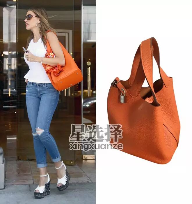 Sofia Vergara,这只橘色的包包叫Picotin Bag,1600欧(9934天朝币)。