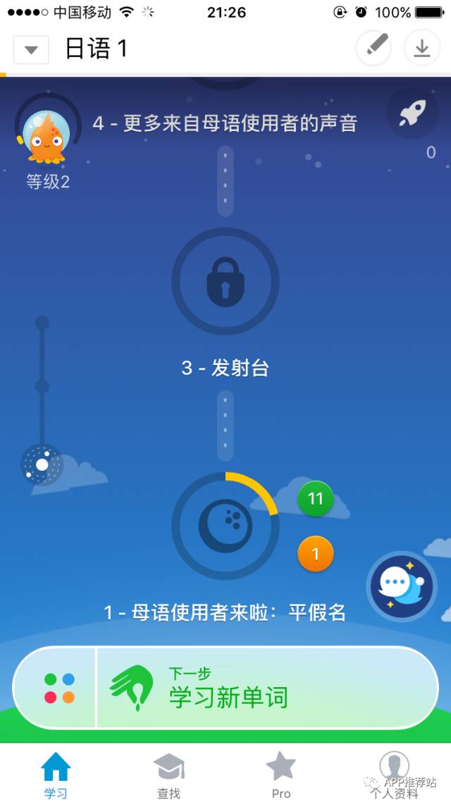 闯关模式,还可以与好友PK,喜欢这种游戏化学习APP的可以尝试一下。可以通过数据统计对自己的学习情况进行总结~