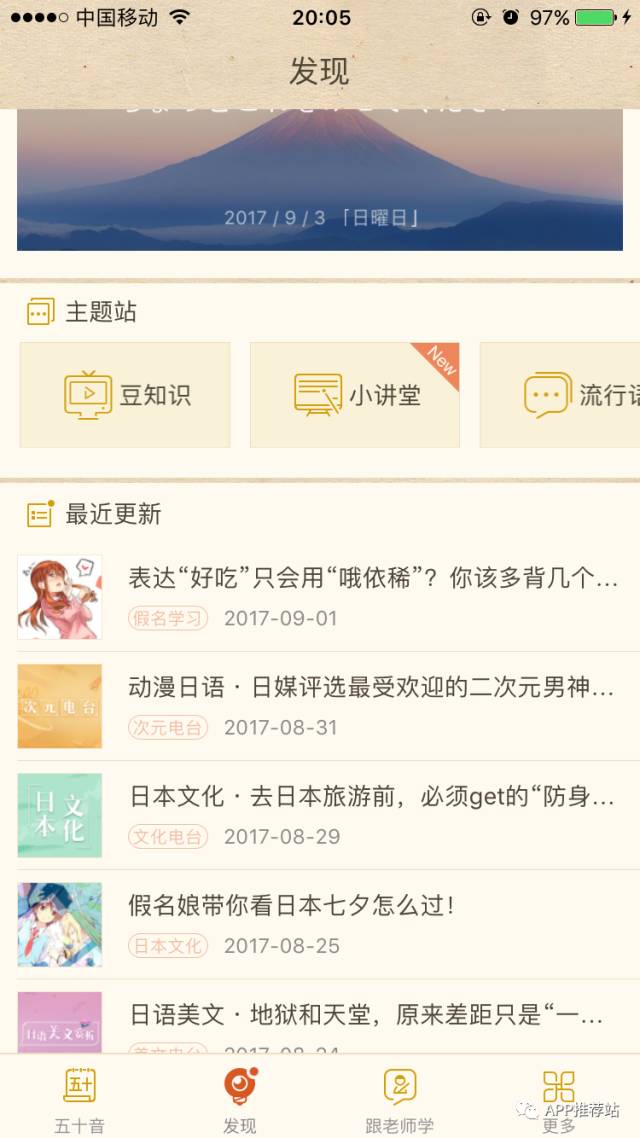 学五十音图必备,非常好用,听发音、可跟读、可书写、可测试,还有联想记忆法和教学视频帮助记忆,各种拓展小知识也很有意思~