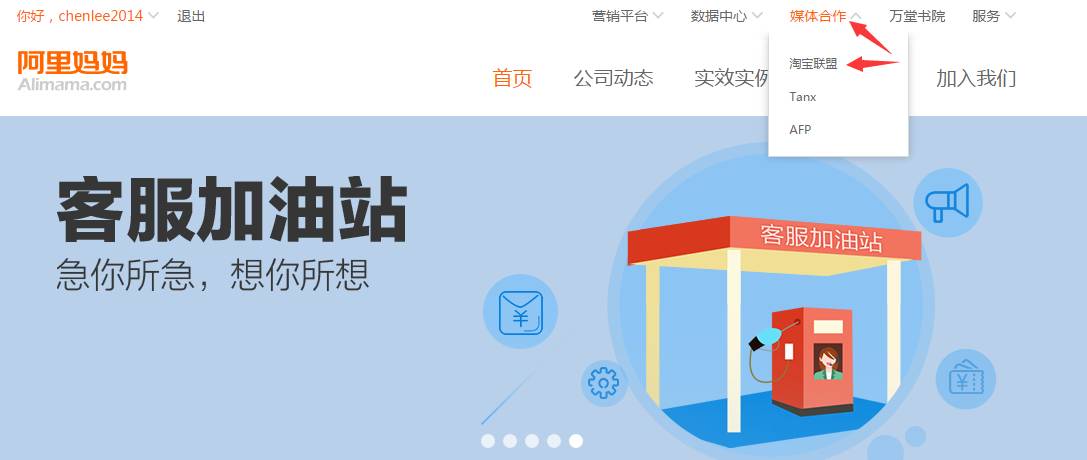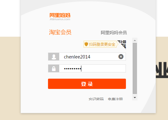 1、在电脑上打开阿里妈妈,用淘宝账号直接登录。