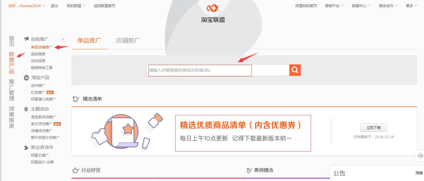 4、进入我的联盟以后,选择联盟产品,单品店铺推广。如图:
