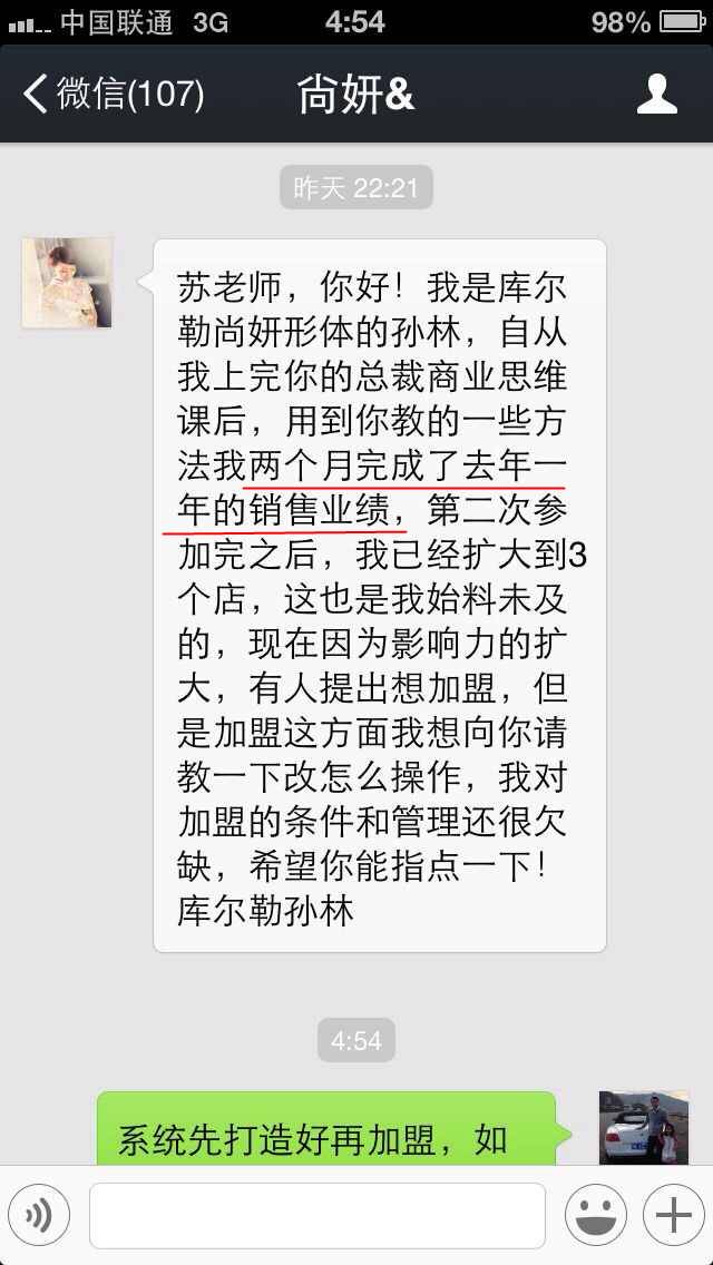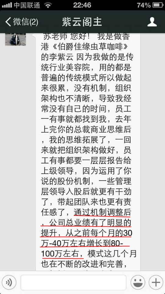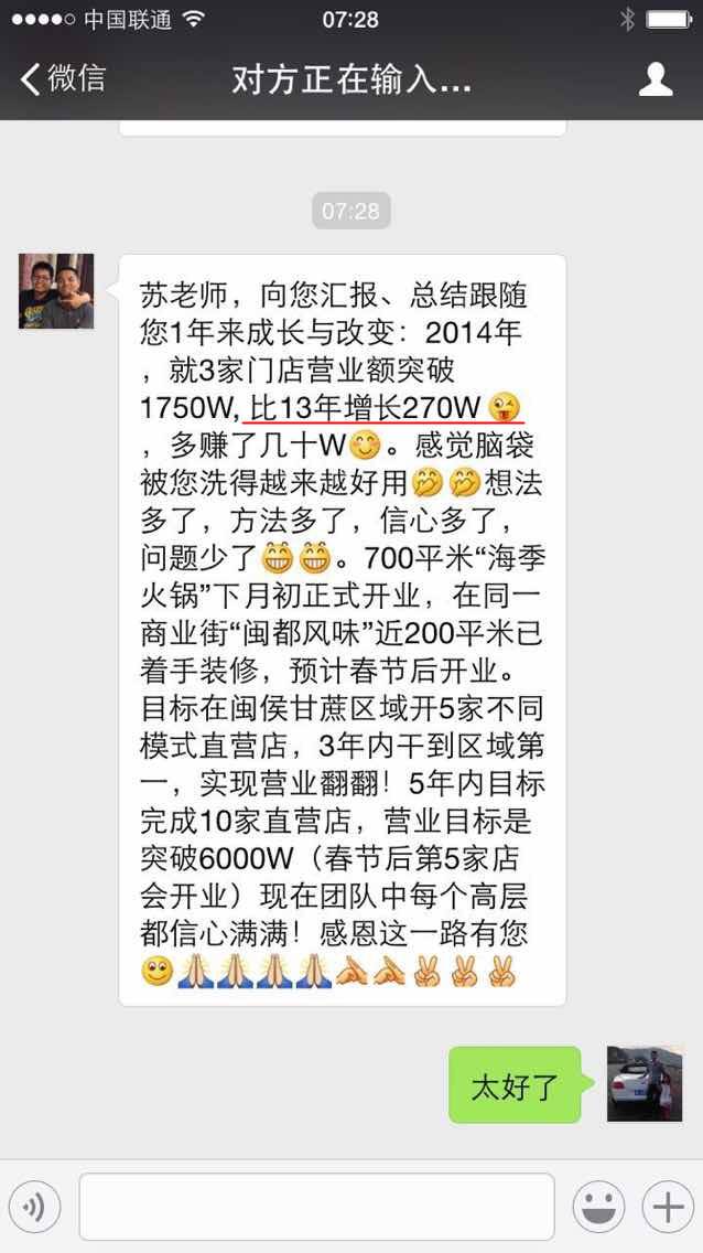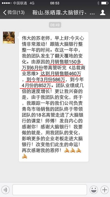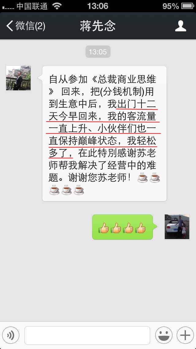 恭喜来自广西从事母婴行业的周勇周总,通过第78届《总裁商业思维》的学习后重新调整了薪酬体系,用彩票式机制把业绩最差的店救活,业绩翻了两倍[鼓掌][鼓掌][鼓掌]这么棒的课程你值得拥有[机智][机智][机智]