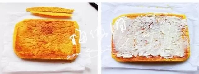 11.完全冷却后,拆开烤纸,切去两头,可切成段即可。