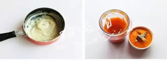 1.南瓜去皮加水煮软,沥干水份,打南瓜泥;