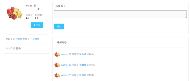 8.个人主页,显示最近动态,发布拼单、跟单列表查看