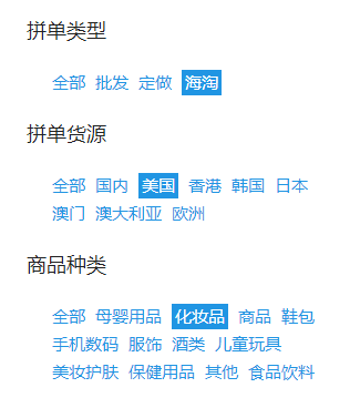 区域导航:一级导航“参与拼单”下的分级筛选区域导航,支持分级并列筛选