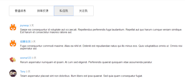 普通消息:拼单关注、评论等