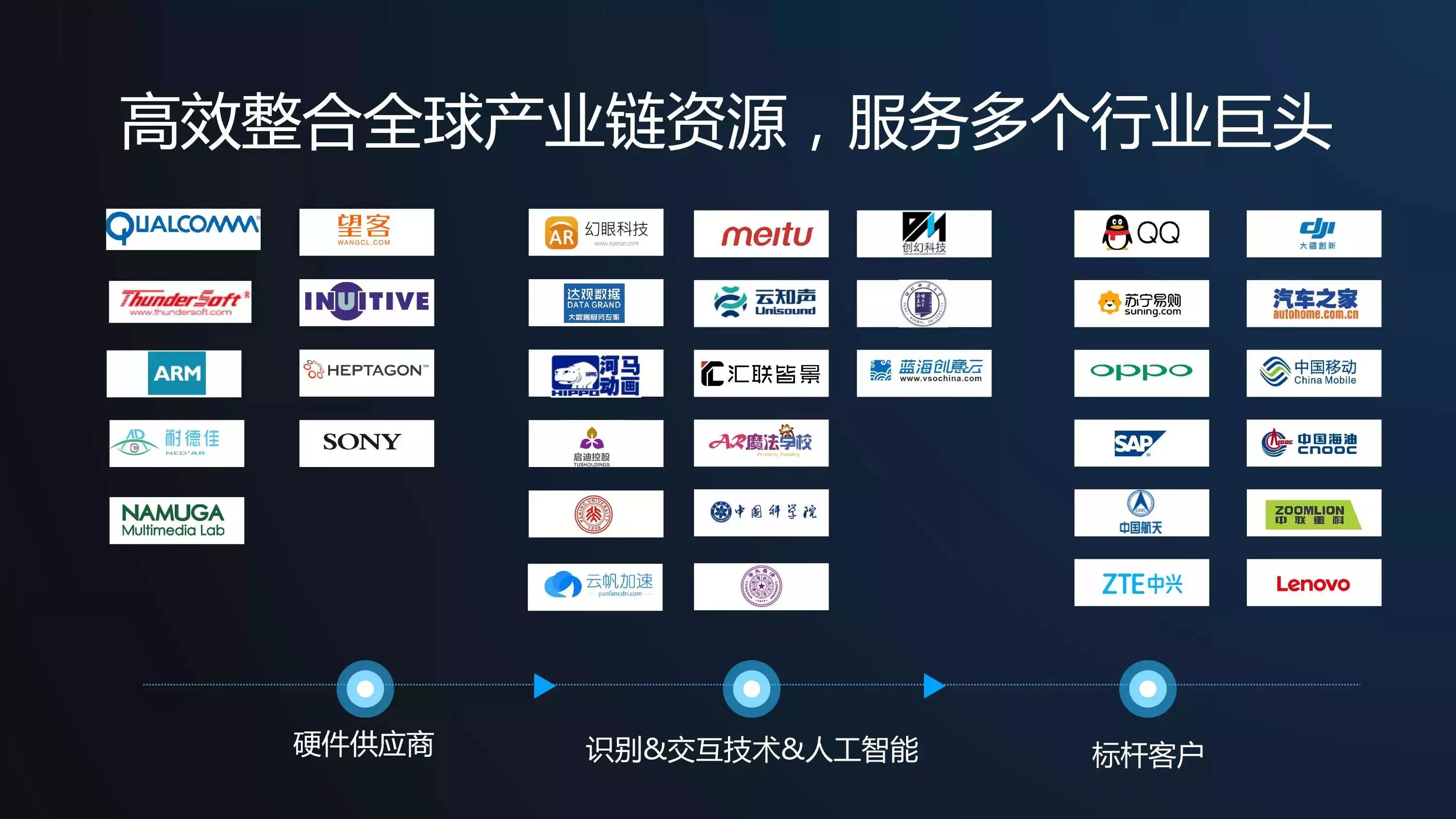 到目前为止,我们已经高效的整合全球产业链资源,为多个行业巨头提供AR服务。