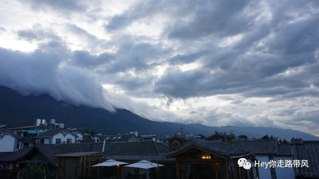 在丽江你无论是在哪个方向或者是在哪个地方,哪怕你是在繁华的市中心,放眼望去你依旧可以360°无死角的看到远处云雾缭绕的山脉,一座连着一座。因为地势的原因这里的云都很低而且大朵的厚重。