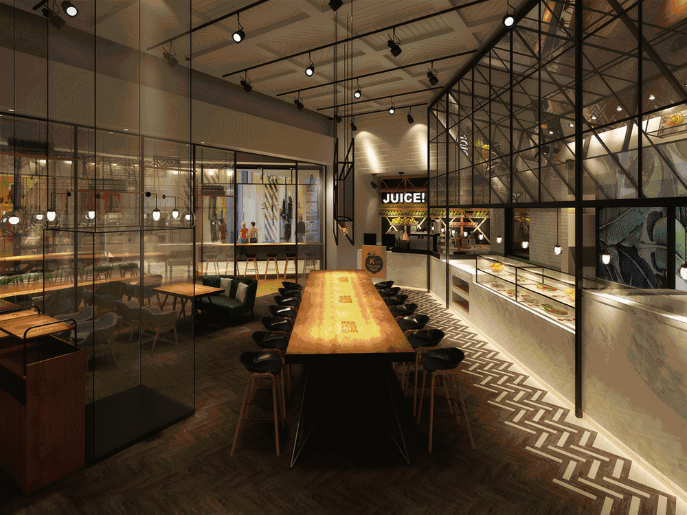 肯德基是红色的西式快餐风格; K PRO是绿色的工业简装风,更像个咖啡馆或西餐厅。