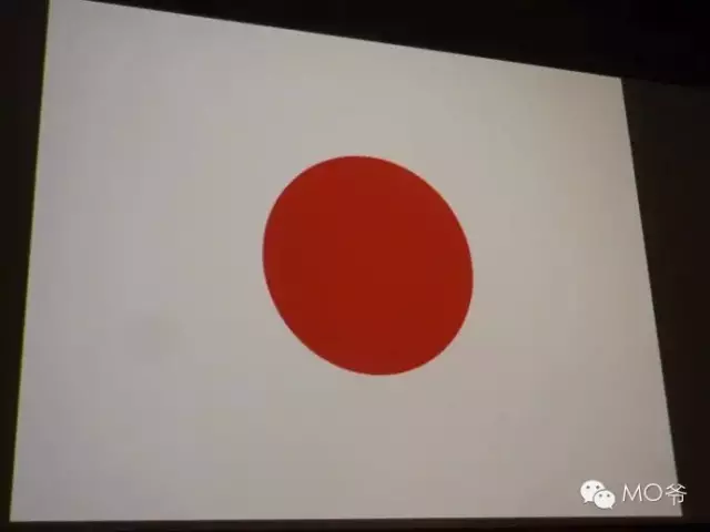 这是日本的国旗,大家都知道,中间有一个红圈,实际上这个红色的圆形没有任何意义,我觉得实际上日本国旗是非常典型的空的容器的理念的一个载体。所以它既然是空的容器,我们把它说成什么都可以。