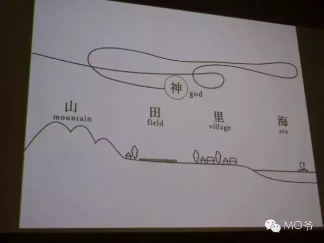 这个图想跟大家谈一下日本人是如何理解“神”这个概念的,日本人认为神是活在自然界当中,比如说山上、田野里、村庄里或者水里面,日本人是这样理解的。神就是飘忽不定的,日本人认为智慧也是和神一样存在于自然界当中,而不是说在人的脑子里。